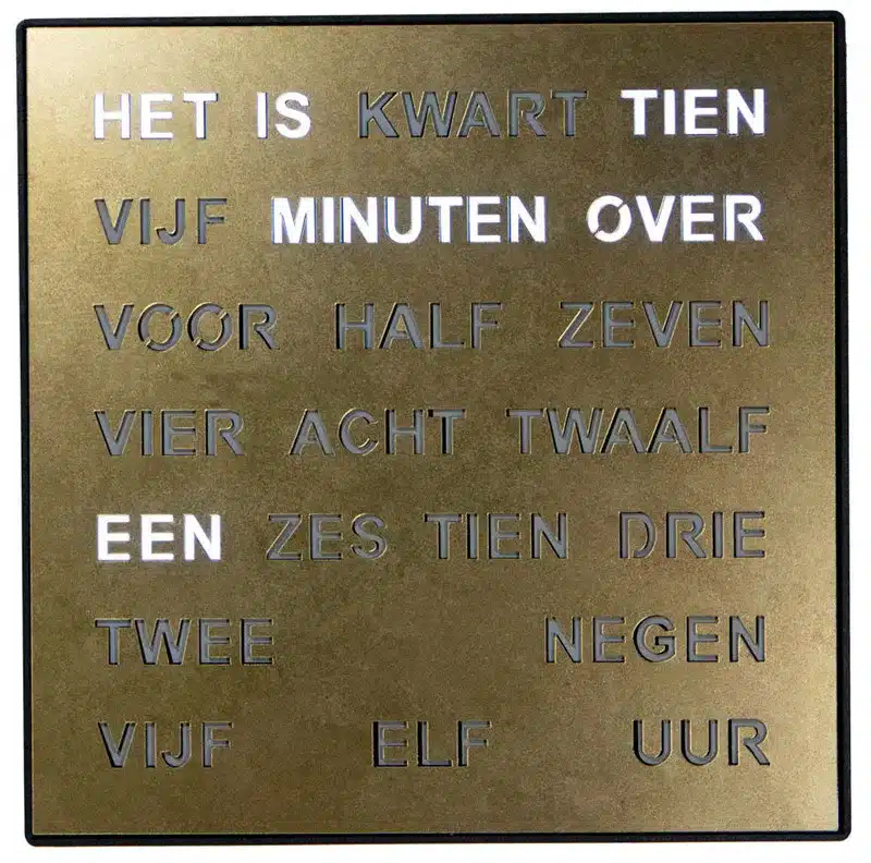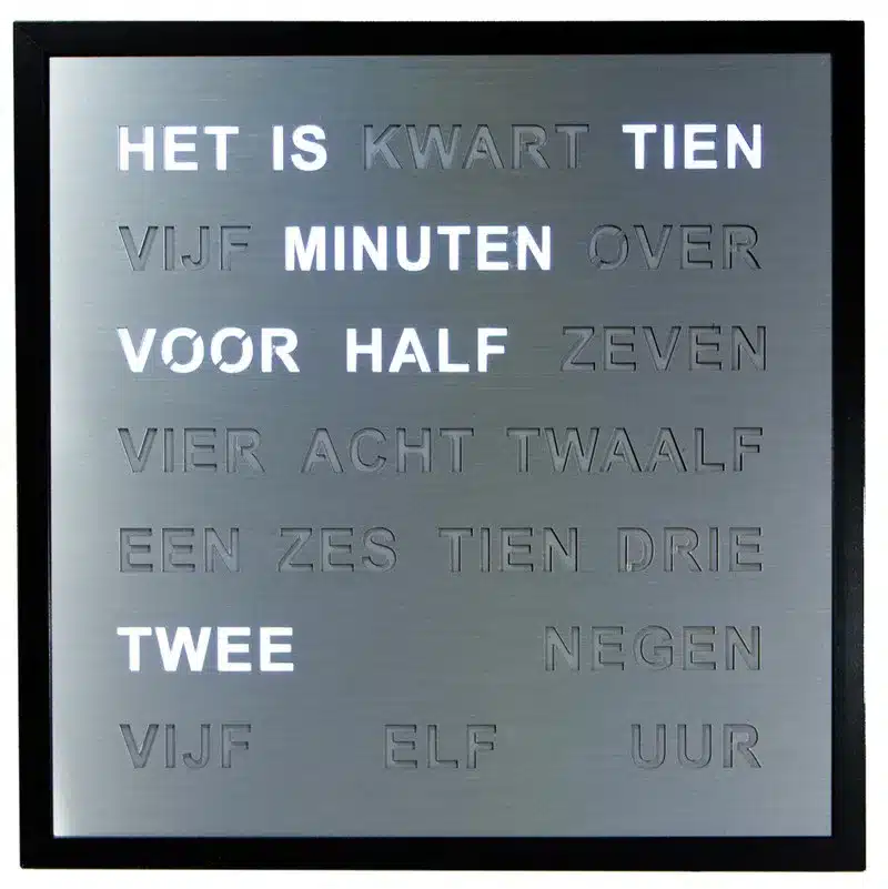 De Intertime woordklok is niet alleen een functioneel tijdinstrument, maar ook een uniek designelement dat stijl, rust en karakter toevoegt aan elk interieur. Verkrijgbaar bij Interieurhof Alkmaar, waar u deskundig advies krijgt over de collectie Intertime designklokken.